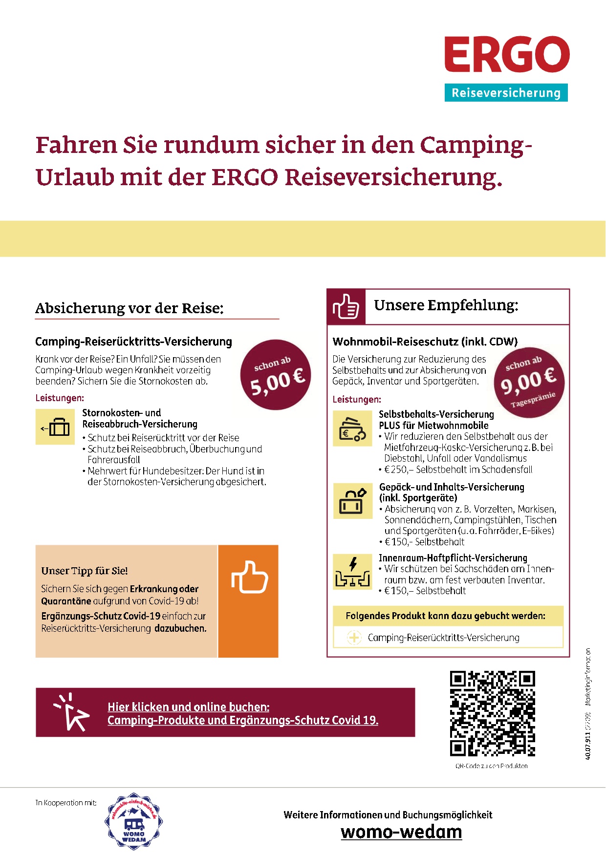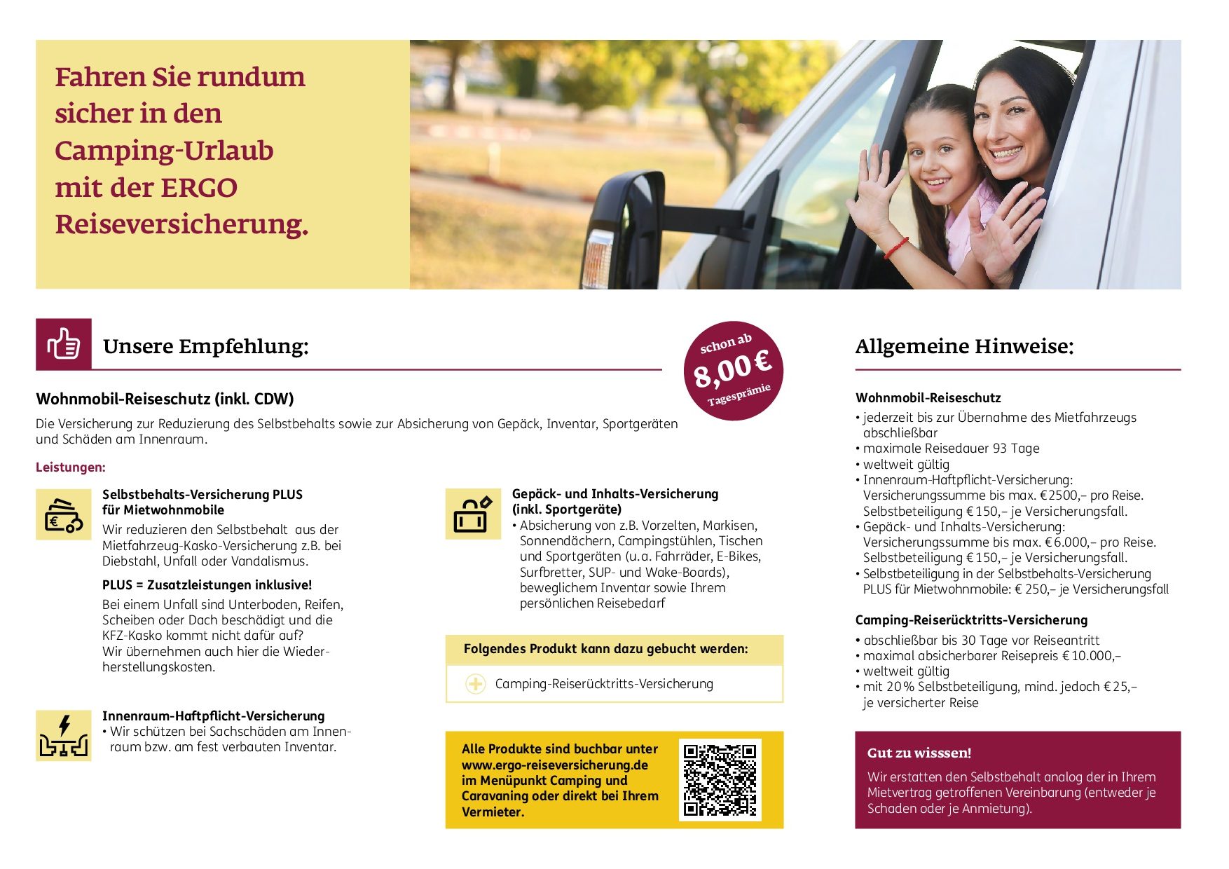 Wohnmobil-Reiseschutz (inkl. CDW) der ERGO Reisversicherung!